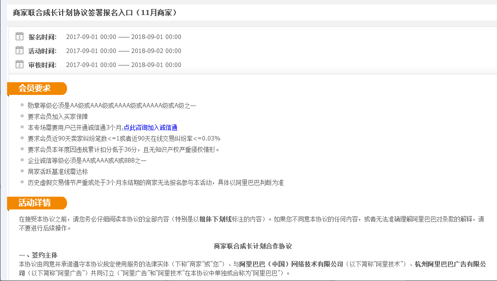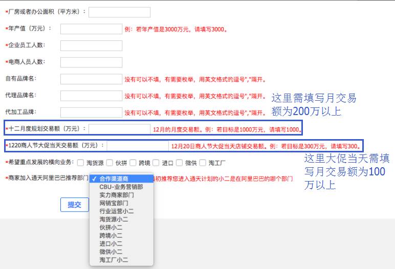 若部分标准不满足上述但属于以下情况可单独申请并有机会通过审核:知名品牌商、有较强的线下实力(实力工厂),有较大线下交易规模且愿意信息化的